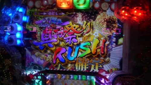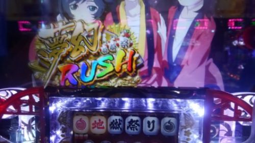 無事、9回転で、3R当りしたので、「真・お祭りRUSH」に突入しました。これが幸先良く、3連目に15回転で「」当りして、早くに「夢幻RUSH」に突入しました。