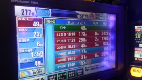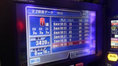 総投資が、2.5Kで3420玉を回収しました。換金12.2Kでプラス9.7Kの勝利でした。