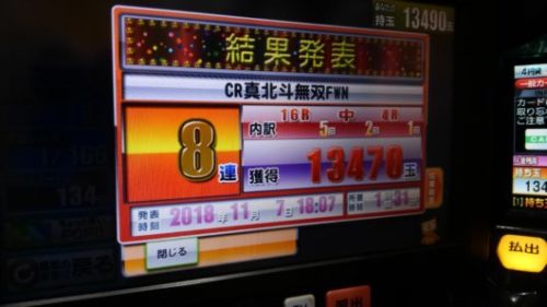 「CR 真・北斗無双」でお座り一発8連チャン