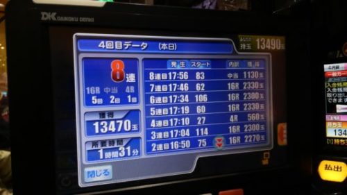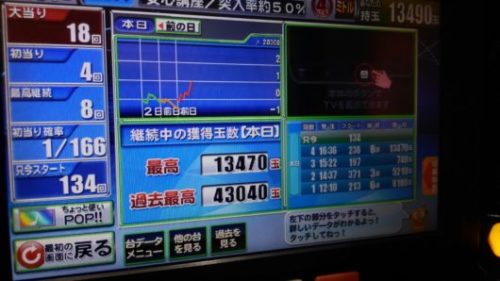 総投資が3Kで回収が13490玉で、48Kでプラス45Kでした。