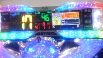 2連目は46回転で、「3」真・北斗無双BONUS当たり。無事に目標の16R確変当たりしました。
