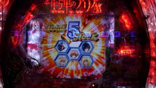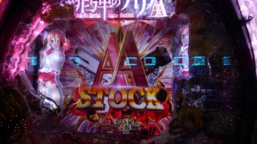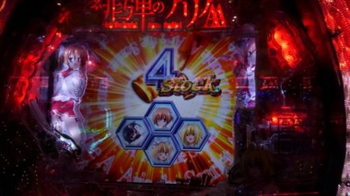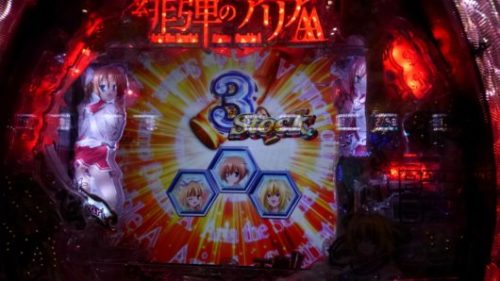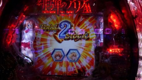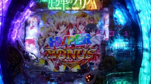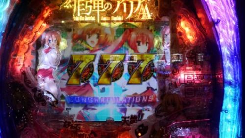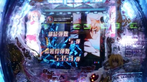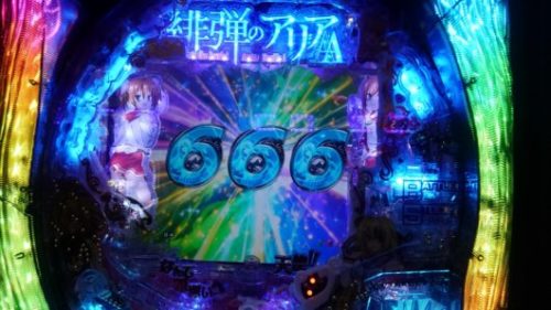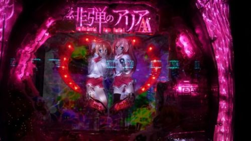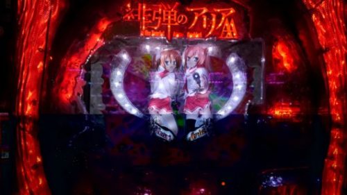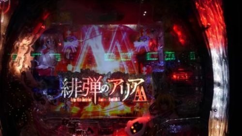 まだ新台なのに空いている「CR 緋弾のアリア AA」で、中角台の好調台らしいのを見つけましたので座りました。
