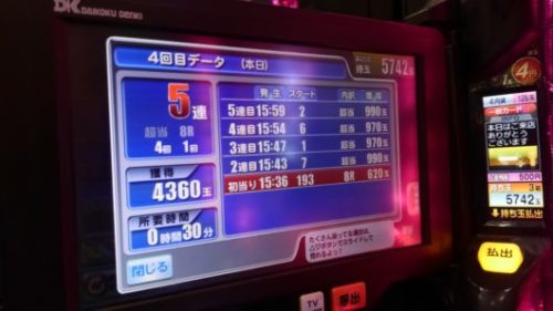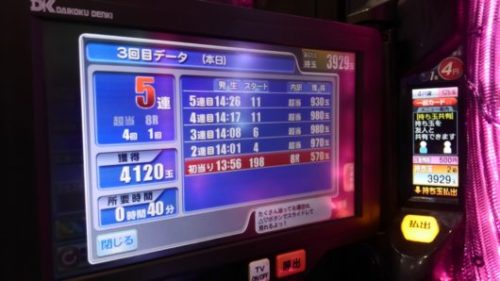 2連目、4回転当り。3連目、6回転当り。4連目、11回転当り。5連目、11回転当り。とまずは5連してくれました。