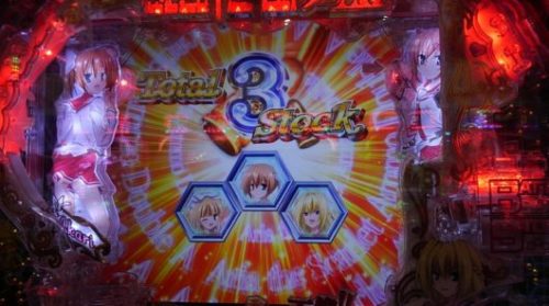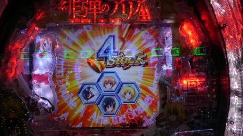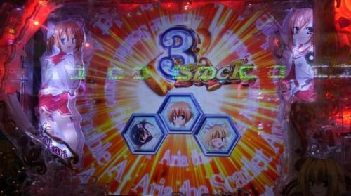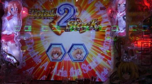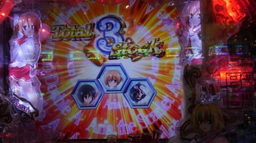 2連目は3回転で、アリア「赤」弾丸で10R当たりしました。無事に「バトルストックシステム」に突入し、初回は、、STOCK×3から始まりました。