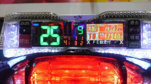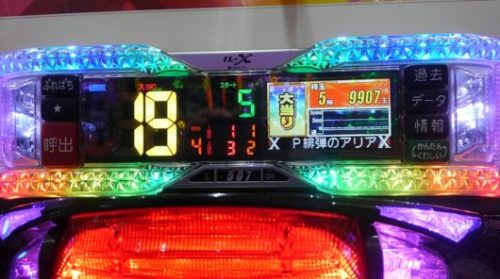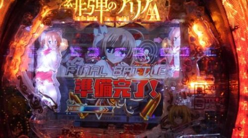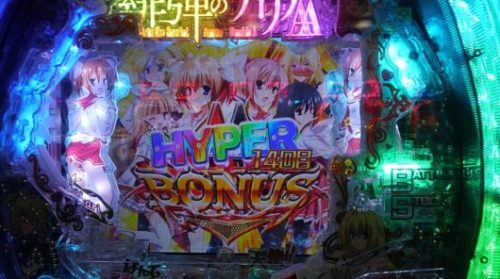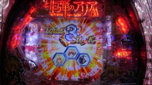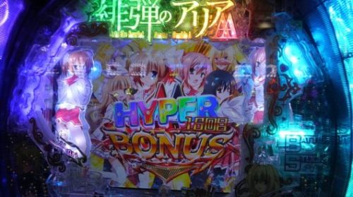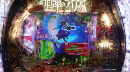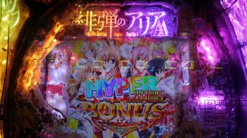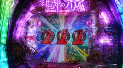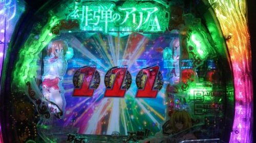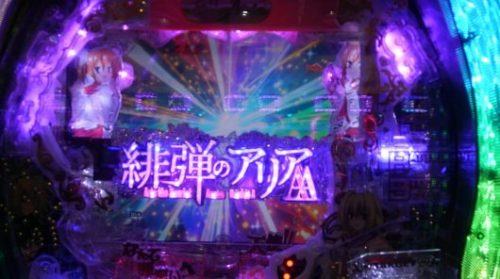 ホールに着いて、最初に「CR 花の慶次2」を打っていましたが、ぱっとしないので他代を見ていると 「CR 緋弾のアリアAA FE 」のライトミドル機で気になる台に座りました。