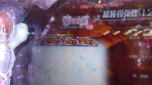 「お座り一発」投資、0.5Kの106回転で、「赤アリア」保留+疑似連×3+「キマシタワー」+「ロゴ落下」+戦姉妹(アミカ)SP演出+エピソードリーチ→「6」3R当たり→「BURETT CHNCE 」に突入しました。