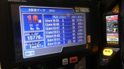 総投資が5.5Kで回収が15629玉でした。換金55.8Kのプラス50.3Kでした。