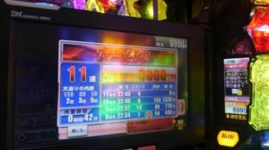 まさかそんなに連チャンするとは思わず、写真撮影してなかったのですが、閉店までかかりっばしの10連で、ここで「金魚群」が出て保留連したのですが、認められず、10連打ち切りで終了でした。