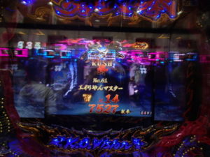 「もう後がないな」と思っていた追加投資、2.5Kの70回転に「伝承者」当りでVS「劉宗武」で勝利し、「蒼拳RUSH」に入ってくれました。リミットまであと1回でした。