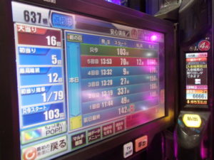 本日、大当たり1回で143回転の台でした。今回は、潜伏確変を当ててハマっていた台でした。昨日自分が大連チャンさせたので、昨日と打って変わって静かな台になっていました。