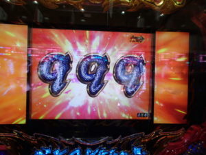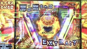 それと以前に経験していますが、3回連続の「EXTRA BONUS」がありました。4連目に8R当たりして、保留の1回転、4R当たり。次も保留1回転で4R当たりした演出でした。これも「激レア」です。