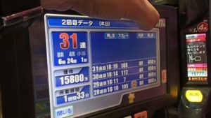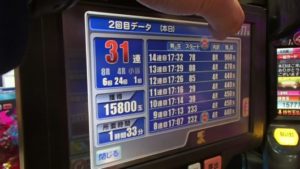 31連して、上皿打ってやめようとしましたら、2回転で当たり、3連しました。これは残念ながら、通常落ちしたようです。