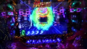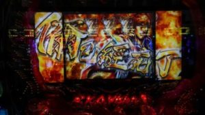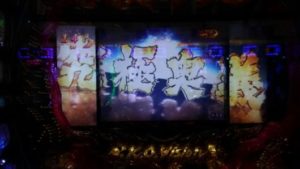 最初の「蒼拳RUSH」に入ってわずか、25回転で当たりました。リミットは不明です。すると3連目に「倫巳光經死了」がありましたので、「CR 蒼天の拳 天羅」の至福の時です。