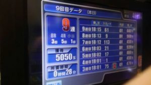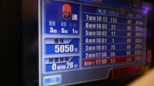 本日は最初から「CR 蒼天の拳 天羅」」が1台空いていたので座りました。5連のあと5回連続単発の後、18回転台でした。