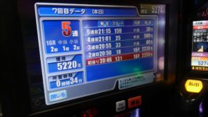久しぶりの連チャンで大収穫でした。出玉なしが2回。4Rが1回。16Rが2回でした。ショボ連なのでいつも通り、即やめです。総投資が20.5Kで差玉が5274玉の18.8Kでマイナス1.8Kでした。