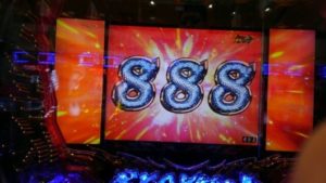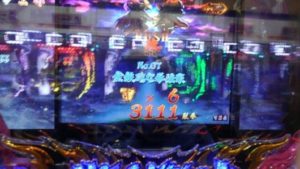 最初の「蒼拳RUSH」に入って、77回転目で当たりましたが計算上は次がリミットのはずです。右打ちっぱなしでしたが、3連目も当たってくれたので、「残り、6回楽しい ! 」と勝手な予想していましたら、5連で終わりました。