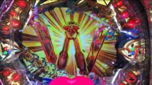 「激アツ」キャラ「不動」+役モノ合体「W合体」+「共闘リーチ」がすべての台と言っていい思います。通常時は「ソーラー役物」か「EVOL役物」単独だけでも良く出る台が「W合体」に繋がります。