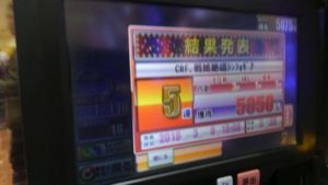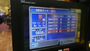 保留連も2回してくれて、5連でした。もう少し連チャンしてほしかったですが、シンフォギアチャンス中はボタンバイブや「赤」系でも平気で外します。4R×2、15R×3回でした。差玉が5050玉でした。