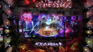 本日、25回当りで5連した時短後、即やめ台で104回転のの台に座りました。回すこと、150回転、15回転、3回転で潜伏確変。19回転、「伝承者」当りからVS「霊王」で勝利して「蒼天RUSH」に突入しましたが、計算通りのリミットで3連止まりでした。