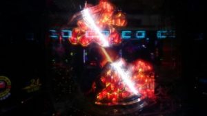 本日、6連+2連して180回転の台でした。260回転まで回して、何もないので、デモ出しがてらにトイレに行って帰ってきた。265回転、キロンと「お突」が出てきて、+真剣フラッシュが出ましたので、捕獲を確信しました。