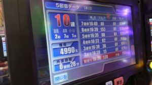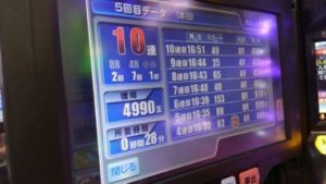 データ上は何処で通常かも引き戻しも分からなかったのですが、計算が合わない10連でした。たぶん潜伏確変時に2R通常当りしていたようです。時間もあったので続行しました。