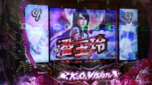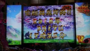 本日、「潜伏確変」4回の後、110回転のたぶん潜伏確変の台でした。投資、1Kの120回転で、「ゴラン」リーチ「伝承者」当たり+VS「劉宗武」で勝利して「蒼拳RUSH」に入ってくれました。