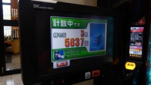 投資2.5Kで、差玉が5837玉で換金が20.6K。プラス18.1Kの勝ちでした。