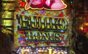 ST後と時短直後は不二子ステージです。他台と同じですが、ここで保留変化が「緑」以上出ると、続行です。