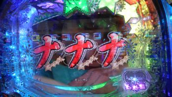 2連目は3回転で4R確変当たりでした。AIR VIBE+丸太リーチ→「ナ」当たり。