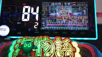 63回転まで回して、何も出なくなったので止めました。総投資が16Kで差玉でも13389玉で換金47.8Kのプラス31.8Kでした。出玉的にはライトミドルの「P スーパー海物語5IN 沖縄-桜-199Ver.」で14連した時と変わらないのは、少し不満だなというところです。