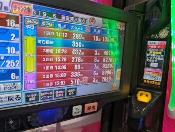 この記事を書く間で、2連~3連で終わる台も、ある程度打ってきましたが、それでは、319のミドル機は勝てません。筆者はそんなやる気の台は時短後に「即ヤメ」します。