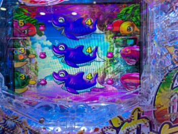 その次は、300回転ほどで、ジュゴン図柄のノーマルリーチ半コマ外れでした。筆者は、ノーマルリーチの半コマ外れする台が嫌いなのです。しかし、この台に限って気になったので、続行しました。