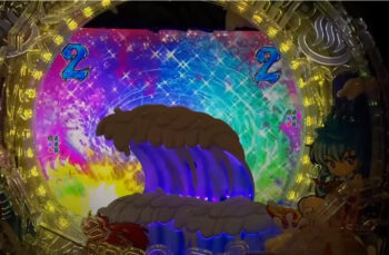 電サポ1回転で1/1.1の大当たりを目指す右打ちモードで、継続率は90%となります。演出は早くシンプルで、カスミがウォータースライダーから飛び出せば大当たり+RUSH継続で演出失敗で通常時に戻ります。
