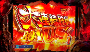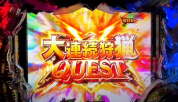 右打ち中限定のプレミアムボーナスで、発生時点で「大連続狩猟QUEST」が継続濃厚です。