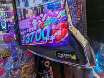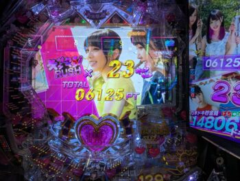 案の定、回らない台はだったのですが、保留消化していたら、258回転で、サイド液晶回転数「赤」+Air Vib+「赤」保留+山下美月連続予告×3+ロゴギミック落下+変身SPSPリーチ「秋元真夏」→「1」耶→「きゅんきゅんRUSHアタック」➝ストック×2→超キュンキュンRUSHに突入しました。