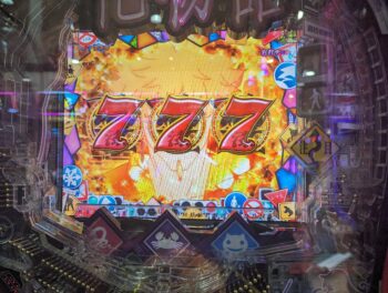 2連目は僅か6回転で、メメ変動+「7」テンパイ→「7」10R当たりしました。