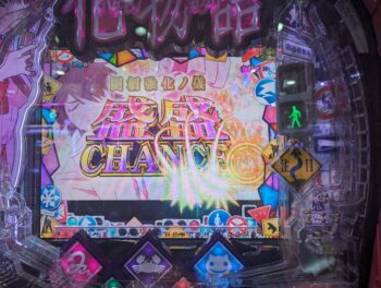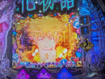 今回の「P化物語 199ver.」初当り確率が1/199.8で確変突入率が、最近の台としては珍しい100%です。確変を当てるとSTが100回転の電チューサポートがつき、ST中の大当たり確率は、1/68.5なので、継続率も77%あります。