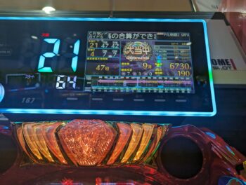 3連目は64回転、鬼死回生チャージからラウンド昇格して10R当たりしました。連チャンする台はこの演出が見れそうです。