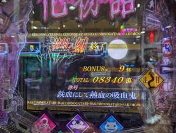 「CR 偽物語 199Ver.」は確変突入率も継続率も低かったのですが、16R当たりするとヘソで1872個、電チューでは2016個の大量出玉が獲得できました。ただし、ST中の確率が、1/95.8と低確率だったため、ST即抜けか連チャンしない仕様でした。