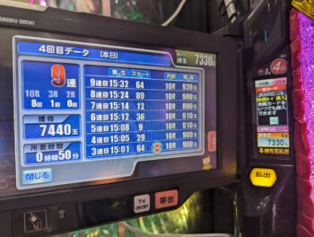 4連目は9回転で「4」テンパイから→「7」10R当たりでした。
