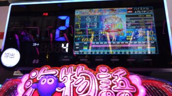 2連目は残保留の4回転、左タテ「ヤッコ」+サンゴ礁リーチ→「ヤッコ」10R当たり。ハマり台での「ワンセット」はお決まりコースと思っていましたが、「セグ」が怪しかった通り、ラウンド中昇格演出「LUCKYじゃんけん」で勝利して、確変継続しました。