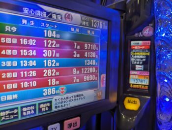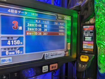またしてもよく出た台を敬遠せずに、打ってみることで勝ち組に入れるチャンスがあることを証明できる実践でした。27回まで伸ばした時点でまだ時間は16時30分頃でした。