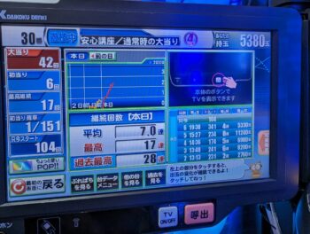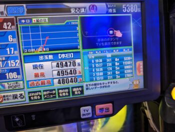 またしてもよく出た台を敬遠せずに、打ってみることで勝ち組に入れるチャンスがあることを証明できる実践でした。42回まで大当たりを伸ばしました。