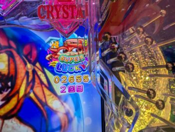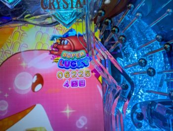 周囲の人達は「単発なのでいいかな」程度で見ておられましたが、筆者は「セグ」で確認済みだったので、大当たりラウンド中にレインボーボタンから確変に昇格しました。ラウンド終了後にクリスタルモードに変更しました。