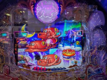 3連目は24回転、「タコ」×「ハリセンボン」+SUネッシー+ドデカボタン「連打」「ビッグプレミアム」→「タコ」10R確変当たりでした。なんでも当たります。