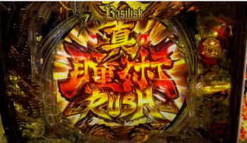 なお、「真バジリスクタイム」中は3R大当たりがメインに発生するが、10R大当たりを引くことができれば1/2で「真瞳術RUSH」に再突入します。「RUSH」時の大当たり確率は1/3.72です。