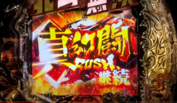 通常時に無法ボーナス当選→時短100回転で10R引き戻し→幻闘無法勝負突入というのが、基本的な流れです。なお、RUSHである幻闘無法勝負へは、初回10R大当たりや無法ボーナスの一部からも突入します。