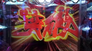 「お座り一発」346回転、炎陣斬獲演出(直江図柄と慶次図柄テンパイ)+チャンス目リーチ→「六」ラウンド昇格して4R確変当たり。あっさり「天下無双RUSH」に突入しました。