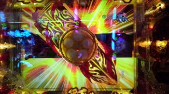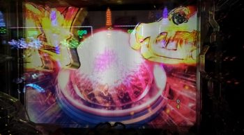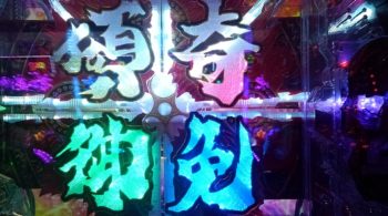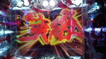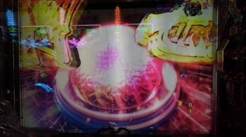 6連目は8回転、朱槍ギミック+「天撃ボタン」→「7」10R当たり。