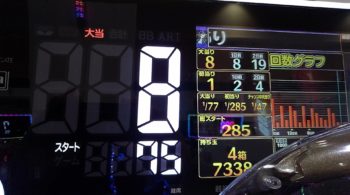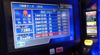 鋭い方ならお分かりだと思いますが、470回転の内、STが100回転なので、前日の370回転と本日の124回転を足すと494回転ハマりの台だと思えます。